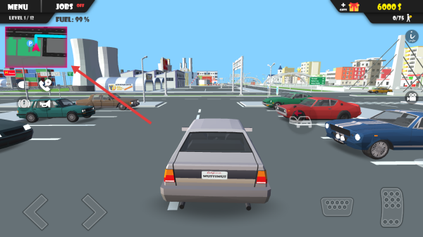 3、駕駛車(chē)輛時(shí),參照左上角小地圖綠色標(biāo)記規(guī)劃路線,前往送餐點(diǎn),注意燃油與任務(wù)時(shí)間,完成配送。