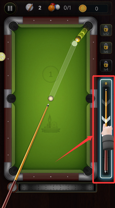 2、確認角度合適后,點擊右側(cè)擊球區(qū)釋放球桿,推動母球撞擊目標。