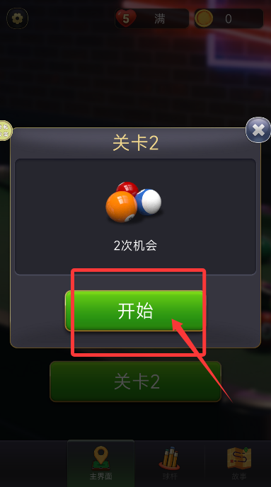 3、成功完成當前關(guān)卡后,點擊“繼續(xù)”按鈕,即可加載新的臺球?qū)?zhàn)場景。