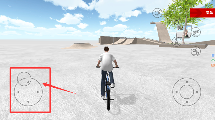 2、完成設置后,使用左邊搖桿控制自行車角色,在場地中自由騎行移動。