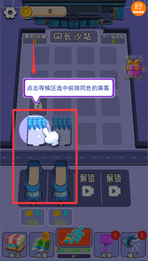 2、按照屏幕提示的順序安排乘客上車,先來的先上,避免插隊(duì)導(dǎo)致任務(wù)失敗,耐心一點(diǎn)慢慢操作。
