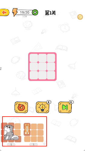 4、將下方小動(dòng)物拖到方框內(nèi),填滿方框,即可完成關(guān)卡。