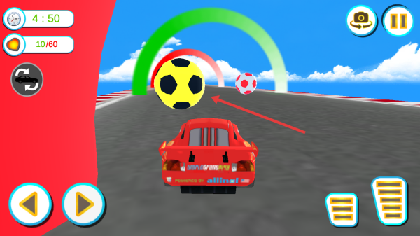 3、駕駛時(shí),用左右按鍵控方向,在賽道收集足球道具,留意時(shí)間4:50與燃油10/60,推進(jìn)生涯關(guān)卡。