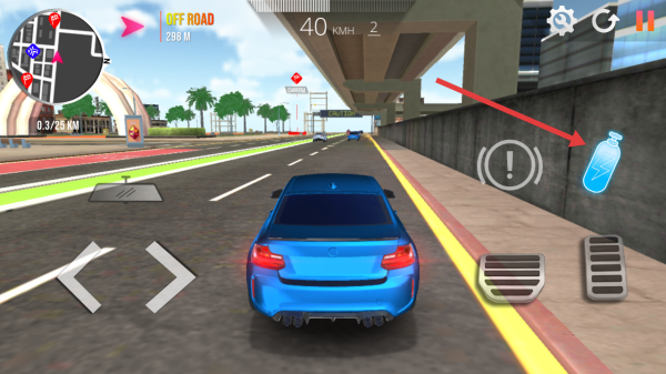 2、行駛中,留意右側(cè)藍(lán)色道具氮?dú)馄?,按提示點(diǎn)擊使用,提升車速助力完成任務(wù)。