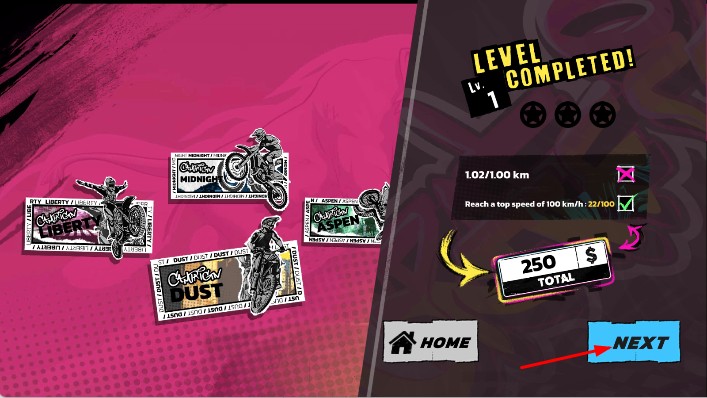 3、成功完成關(guān)卡,界面顯示LEVEL COMPLETED,獲取獎勵,點擊NEXT進入下一關(guān)。