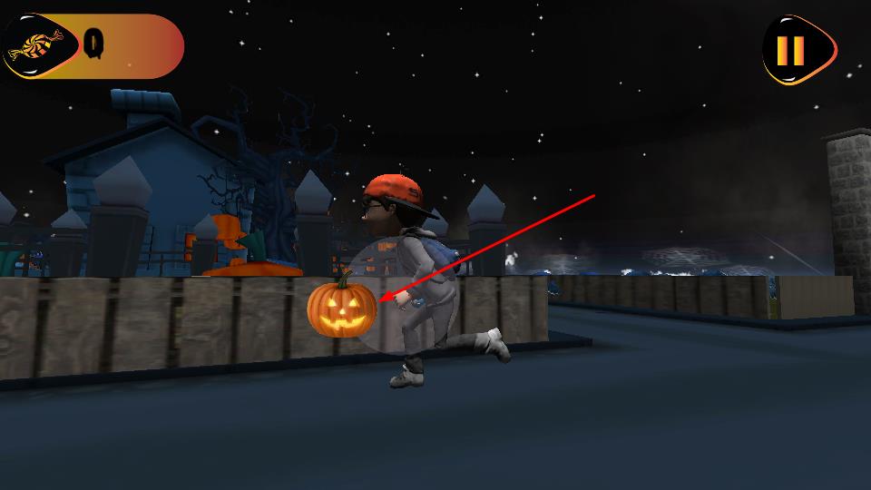 2、進入游戲場景后,操控角色奔跑移動,途經(jīng)南瓜道具時主動觸碰收集,積累道具資源,助力后續(xù)后續(xù)冒險提供助力。