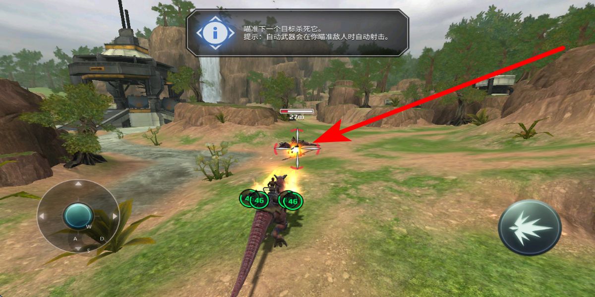 3、遇到目標(biāo)后,利用自動(dòng)武器鎖定即射的特性,穩(wěn)定瞄準(zhǔn)敵人,讓武器自動(dòng)輸出火力,集中攻擊要害,按提示成功擊殺目標(biāo),順暢推進(jìn)關(guān)卡進(jìn)度。