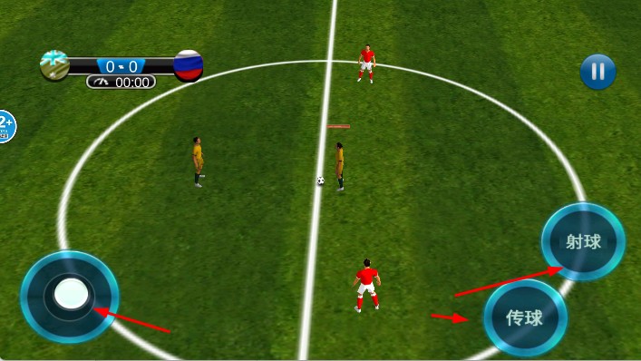 3、進入比賽,用虛擬搖桿控制球員移動,點擊傳球,射球按鍵,指揮隊伍進攻、防守,帶領(lǐng)隊伍征戰(zhàn)。