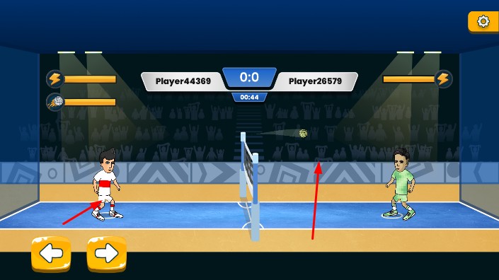 3、比賽中,用左右箭頭按鍵控制球員移動(dòng),用腳踢排球過(guò)網(wǎng),與對(duì)手競(jìng)技,通過(guò)球技組合得分,爭(zhēng)取贏得比賽。