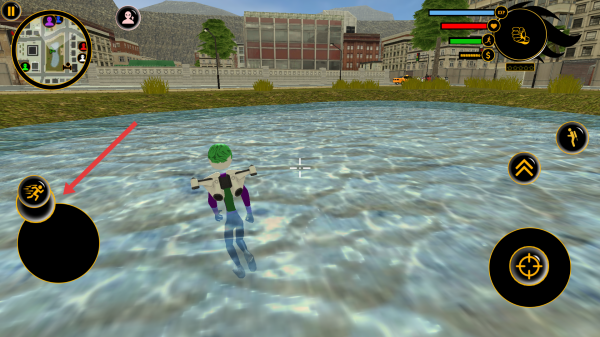 1、在剛開局的水域的場(chǎng)景,點(diǎn)擊左側(cè)的跑步按鈕可加速的移動(dòng),助于快速探索或躲避危險(xiǎn)。