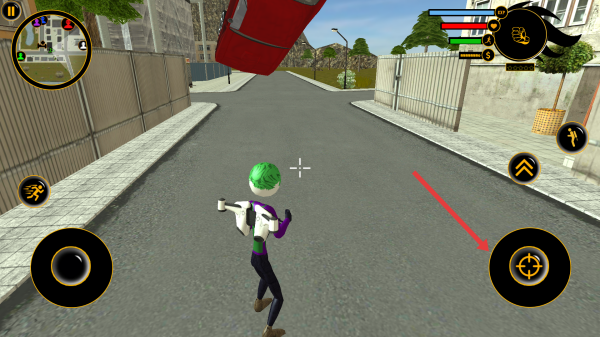 2、街道遇威脅時(shí),點(diǎn)擊右側(cè)射擊按鈕用武器攻擊目標(biāo),配合移動(dòng)保障安全,推進(jìn)游戲流程。