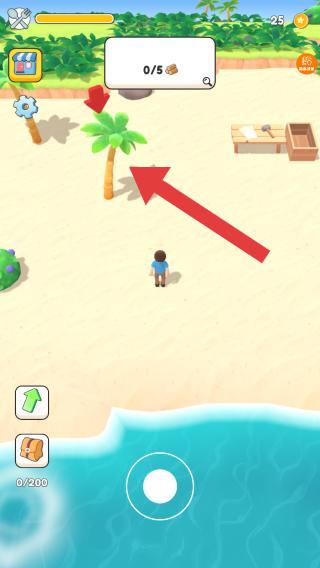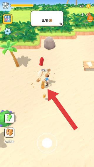 1、一點(diǎn)擊游戲玩家便能夠直接進(jìn)入到場(chǎng)景內(nèi),畫面中會(huì)呈現(xiàn)新手教程的指引以及任務(wù)目標(biāo),需要收集木材5個(gè)。