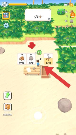 2、玩家處于砍伐木材的階段,收集完木材后還需要收集石頭10個(gè),需要根據(jù)提示進(jìn)行相對(duì)應(yīng)的操作。