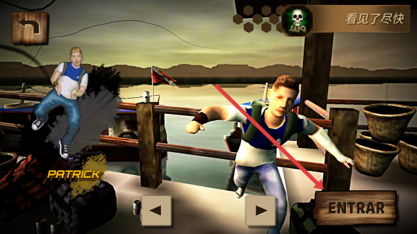 2、場(chǎng)景中操控角色靠近ENTRAR木牌并點(diǎn)擊,進(jìn)入新區(qū)域,與Patrick一同推進(jìn)游戲進(jìn)程。
