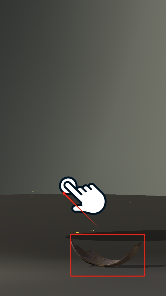 1、第一階段,根據(jù)白色手指指引,點(diǎn)擊并按住紅框內(nèi)的金屬碎片,向上拖動(dòng),將其移至合適位置。