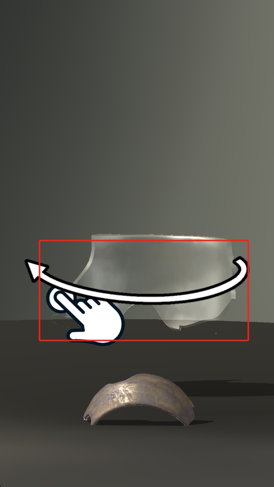2、第二階段,按照弧形箭頭指示,用手指拖動(dòng)紅框內(nèi)的透明碎片,沿箭頭方向旋轉(zhuǎn)、拼接,契合整體結(jié)構(gòu)。