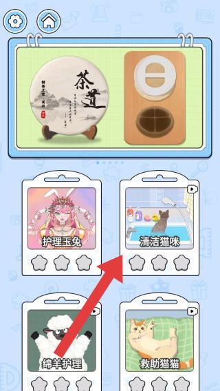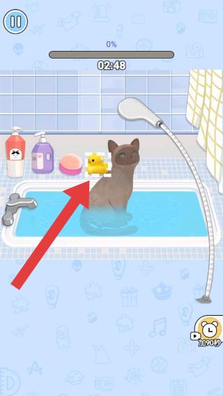 3、放水后需要為貓咪進(jìn)行清潔,在這之前可以選擇一個玩具來逗貓咪開心,再點(diǎn)擊清潔用到的工具進(jìn)行操作。