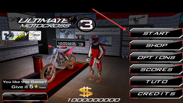 1、在Ultimate Motocross3主界面,點擊右側START,進入賽道選擇頁,選解鎖的01號賽道。
