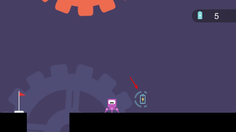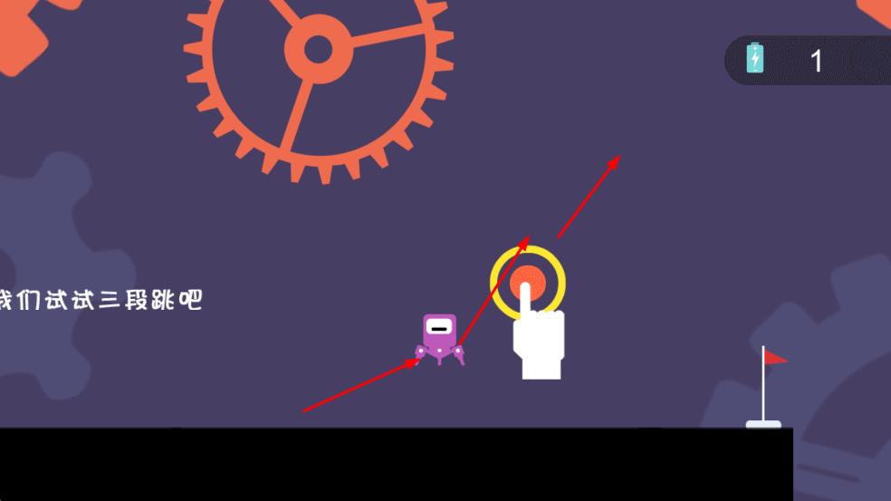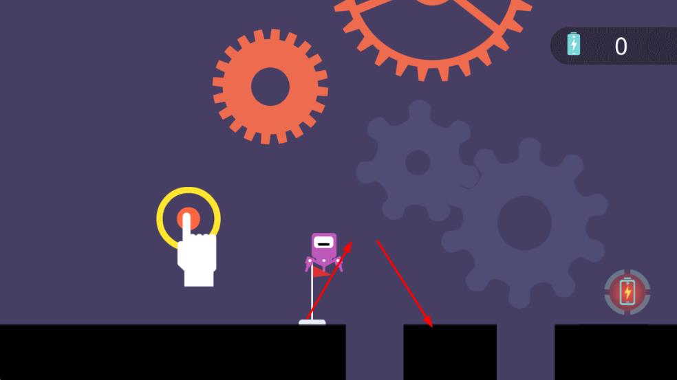 1、點擊黃色圓環(huán),操控紫色機器人跳躍,跨越黑色方塊等障礙。