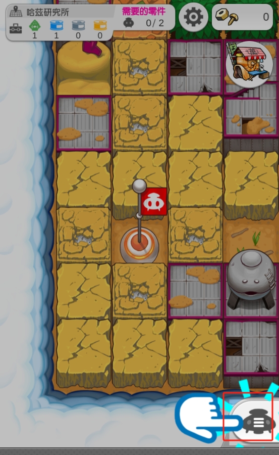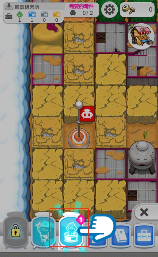 1、在哈茲研究所地圖,點(diǎn)擊右下角紅框內(nèi)甲蟲圖標(biāo),打開道具欄,準(zhǔn)備應(yīng)對(duì)關(guān)卡挑戰(zhàn),收集所需的零件。