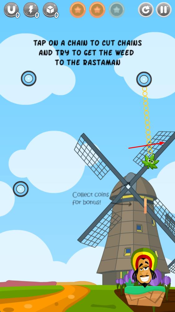 1、切割繩子:通過手指滑動(dòng)切割懸掛樹葉的繩子,利用繩子擺動(dòng)的物理特性,引導(dǎo)樹葉向目標(biāo)位置進(jìn)行移動(dòng),考驗(yàn)操作精準(zhǔn)度。