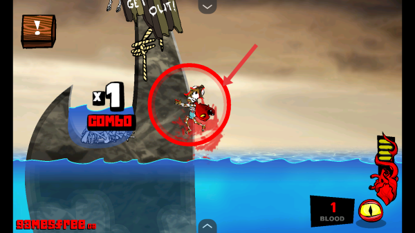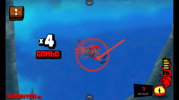 2、落入水中后,跟隨紅色箭頭,控制角色在水域移動(dòng),保持COMBO連擊,注意規(guī)避水下潛在威脅。