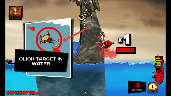 3、遇到CLICK TARGET IN WATER提示時(shí),緊盯水中目標(biāo)區(qū)域,快速點(diǎn)擊屏幕,讓角色精準(zhǔn)的行動(dòng)。