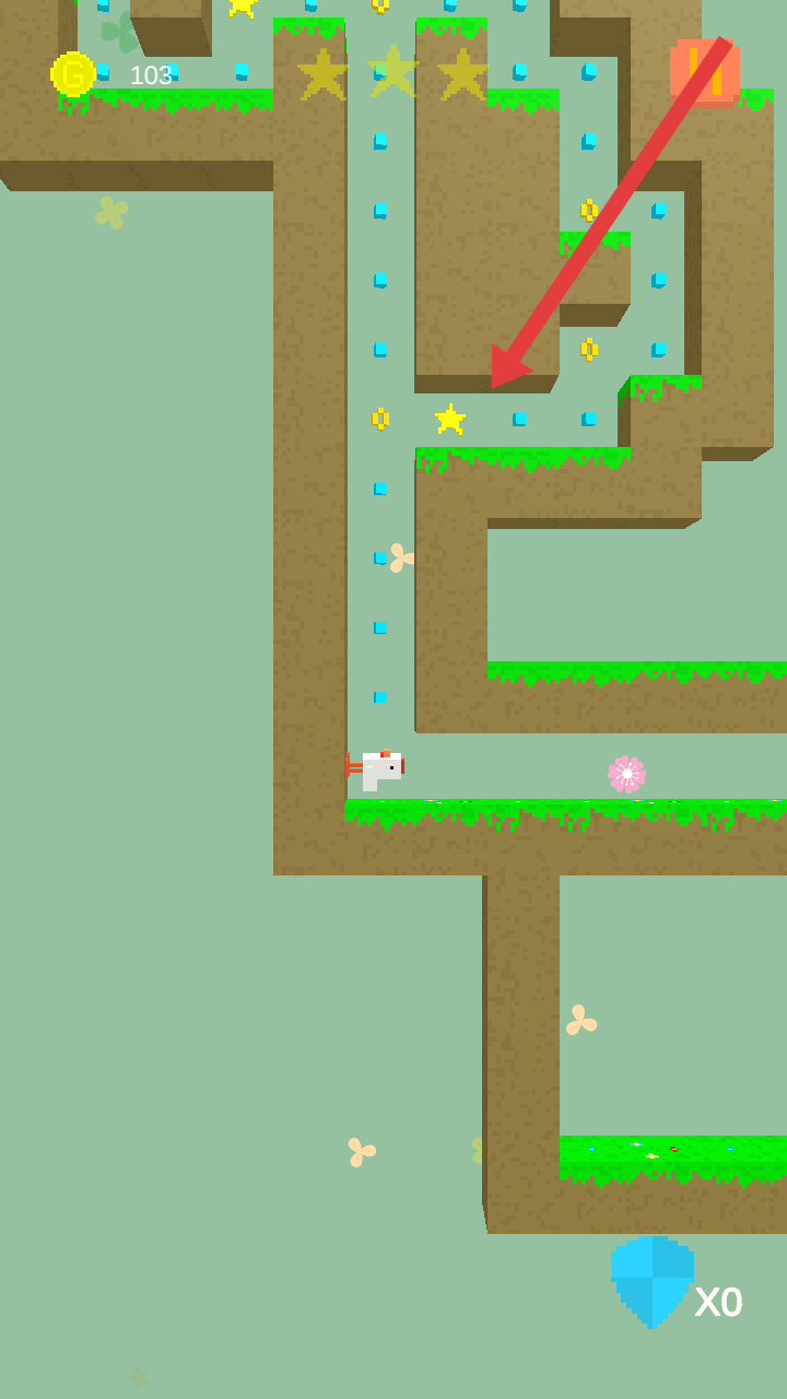 1、操控角色在草地場景前行,沿著路徑收集這些星星與金幣,留意地形變化,規(guī)劃移動路線獲取資源。