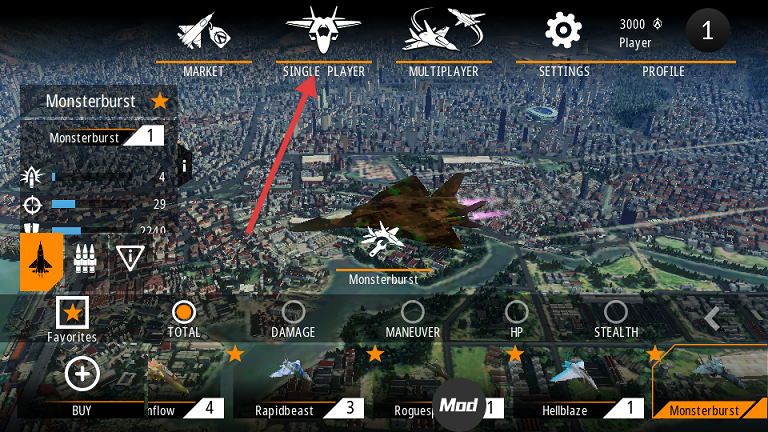 3、完成戰(zhàn)役任務(wù)解鎖新型戰(zhàn)機(jī),升級引擎與武器系統(tǒng)提升作戰(zhàn)能力。