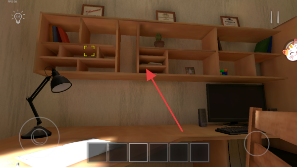 3、探索房間時,關(guān)注書架區(qū)域,箭頭指向的格子可能藏有關(guān)鍵物品或線索,互動獲取道具,推進逃脫劇情。