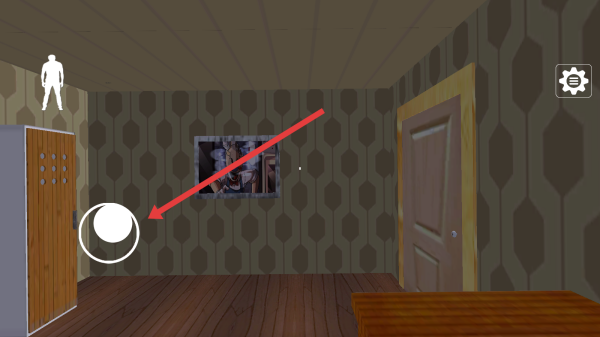 2、在房間內(nèi),通過(guò)滑動(dòng)左側(cè)白色圓形按鈕,操控角色移動(dòng),探索房間環(huán)境,尋找線索道具。