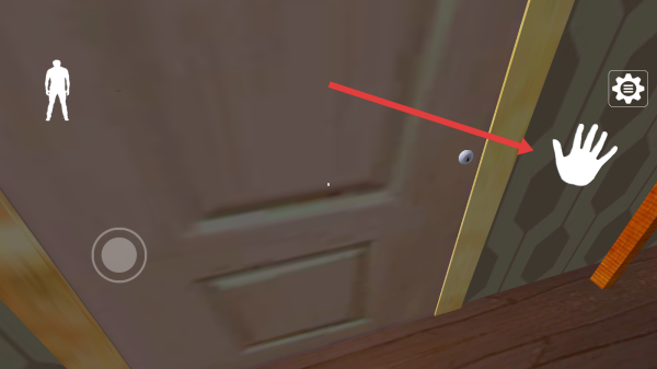 3、靠近房門(mén)時(shí),點(diǎn)擊右側(cè)白色手掌圖標(biāo),嘗試開(kāi)啟房門(mén),繼續(xù)推進(jìn)游戲,解鎖新區(qū)域場(chǎng)景。