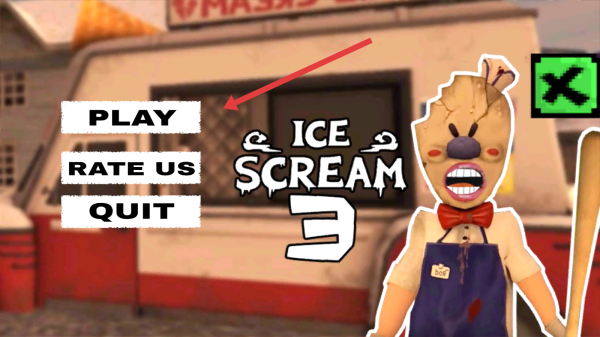 1、在游戲初始界面,點(diǎn)擊PLAY按鈕,進(jìn)入恐怖冰淇淋3的冒險(xiǎn)場(chǎng)景,開(kāi)啟刺激游戲進(jìn)程。