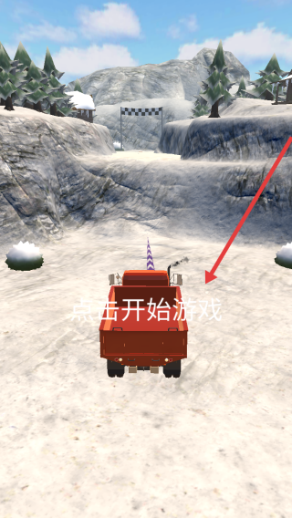 1、在雪地賽道起始界面,點(diǎn)擊開始游戲,駕駛紅色卡車,正式開啟關(guān)卡1-1的競(jìng)速挑戰(zhàn)。