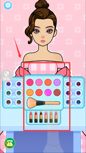 2、服裝選好后進入化妝環(huán)節(jié)、根據(jù)衣服顏色選眼影和口紅、比如穿粉色裙子就搭暖色調(diào)妝容、整體要統(tǒng)一。