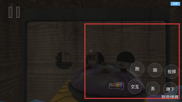 3、游戲中,利用右側(cè)跑、跳、投擲、交互、丟、蹲下功能鍵,與場景互動、躲避危險,推進(jìn)關(guān)卡,完成恐怖冒險。
