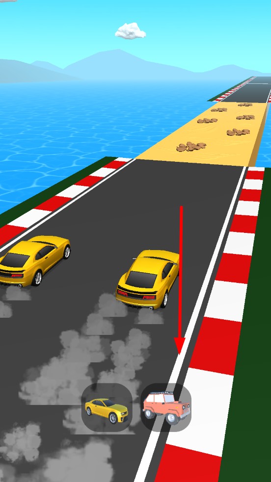 2、競(jìng)速中,沙地里使用越野車(chē),平坦的大道上則立馬改用小汽車(chē),切換之間超過(guò)對(duì)手,將對(duì)手甩在身后。
