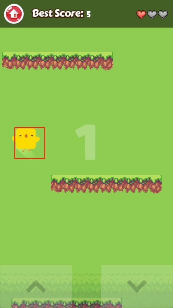 2、操作小雞跳躍時(shí),把握時(shí)機(jī),讓小雞落在草地平臺(tái),避免掉落溝壑,若是不小心掉落,剩余愛心會(huì)減少。