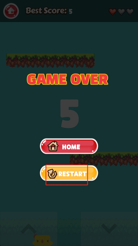 3、愛心扣完游戲就結(jié)束了,界面會(huì)顯示本局的得分,點(diǎn)擊下方的按鈕即可重新開始游戲,嘗試獲得更高的分?jǐn)?shù)。