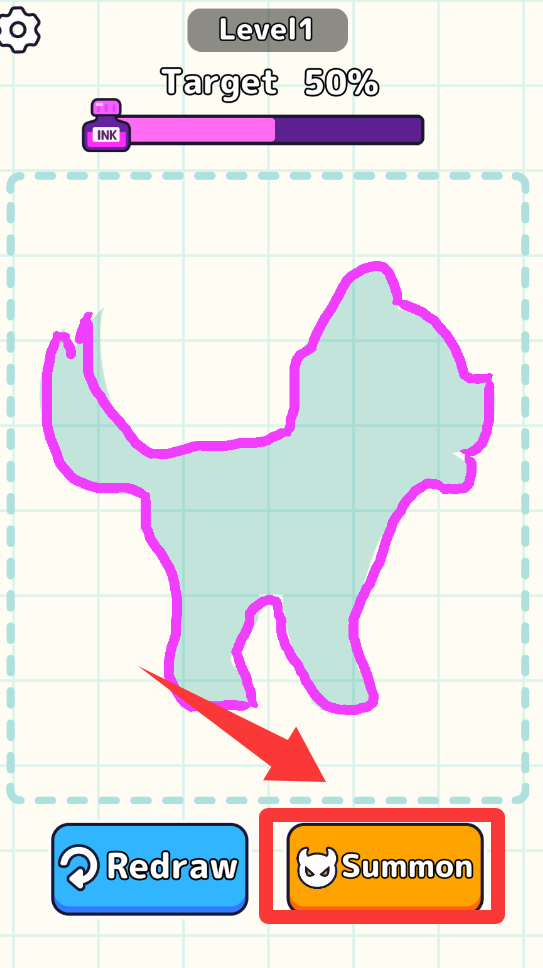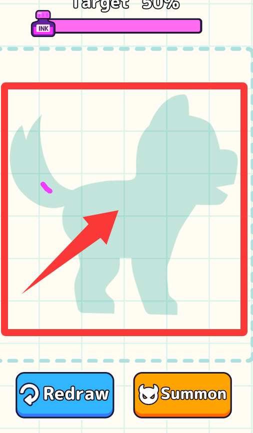 4、畫(huà)一個(gè)可愛(ài)的狗狗出來(lái)點(diǎn)擊紅色框框里的召喚就可以了。