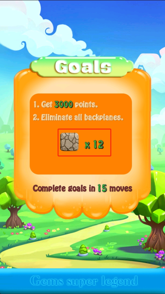 1、本關(guān)目標(biāo)為15步內(nèi)獲取3000分并消除12塊石板,需規(guī)劃消除策略,優(yōu)先組合石板旁同色寶石,借連消清理石板獲取高分。