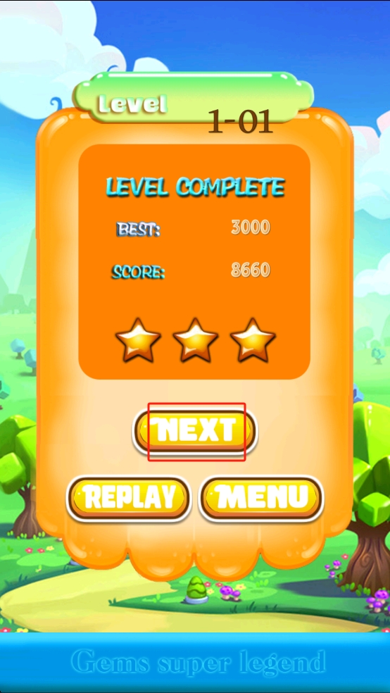 3、成功通關(guān)后,點(diǎn)擊NEXT按鈕進(jìn)入下一關(guān),持續(xù)挑戰(zhàn)新布局,維持高效消除石板與拿分的策略節(jié)奏。