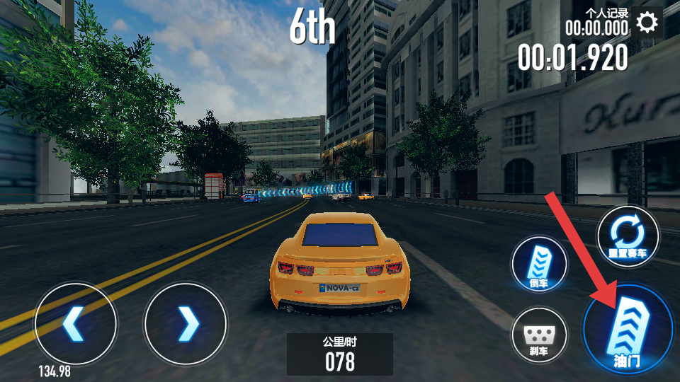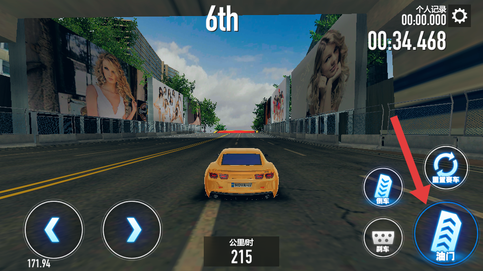 1、進入開啟競速,用左下角的左右箭頭控制方向,右下角油門加速、剎車減速,起步后,保持加速。