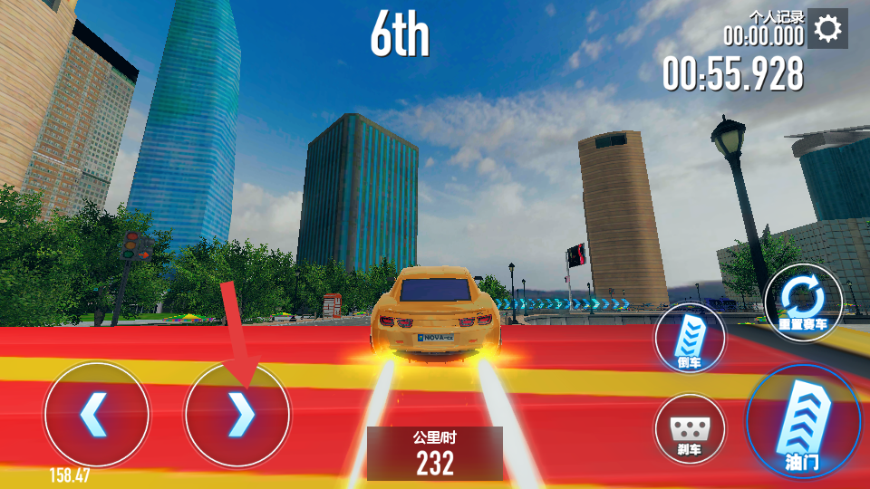 2、行駛中,注意右側(cè)重置賽車倒車等功能,遇廣告牌路段,穩(wěn)定方向,借助直道加速,提升名次。