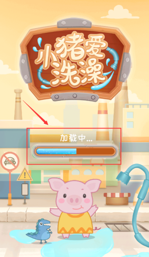 1、等待紅框加載進(jìn)度完成,準(zhǔn)備開始小豬洗澡游戲。