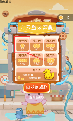 2、點(diǎn)擊紅框第一天獎勵,領(lǐng)取50金幣登錄禮包。