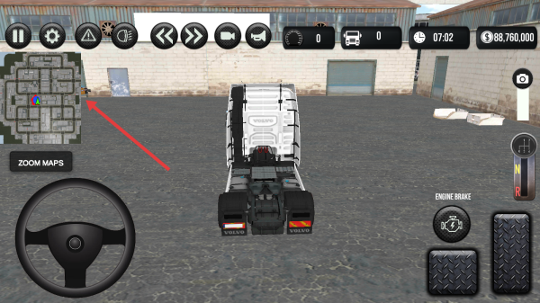 2、進(jìn)入城市模式后,操控卡車,借助左側(cè)小地圖,規(guī)劃路線,用方向盤、油門剎車鍵,在城市場(chǎng)景行駛。