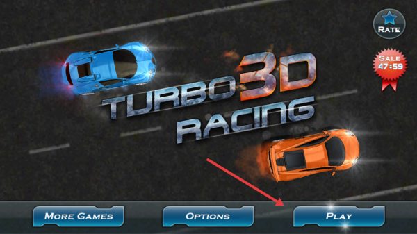 1、在Turbo3DRacing主界面,點(diǎn)擊PLAY,進(jìn)入地圖選擇頁,選解鎖的1.PLAIN賽道,開啟競速。