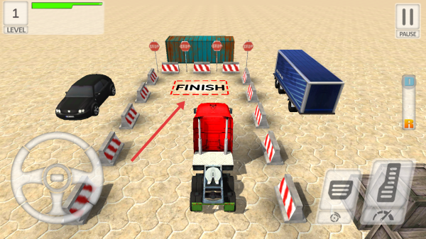 3、沿路線行駛,瞄準FINISH區(qū)域,完成停車任務(wù),積累通關(guān)記錄,后續(xù)解鎖LEVEL2及更多高難度關(guān)卡。