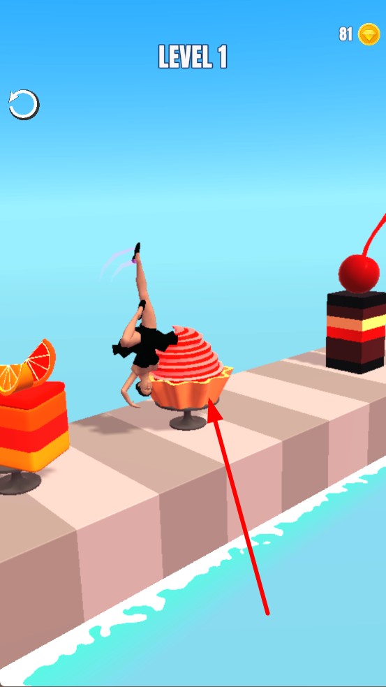 2、賽道中規(guī)劃行進(jìn)路線,使用劈叉將蛋糕切開,每切開一個蛋糕就多獲得一個金幣。